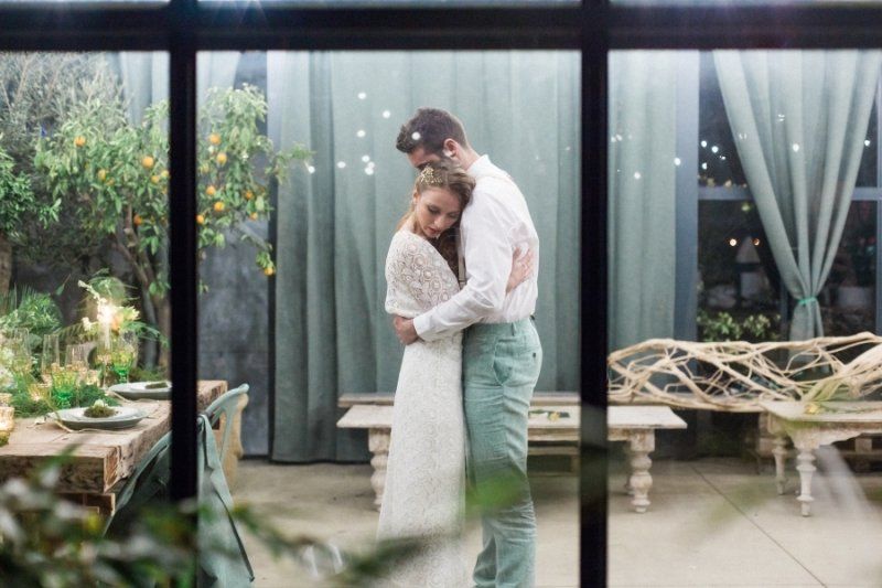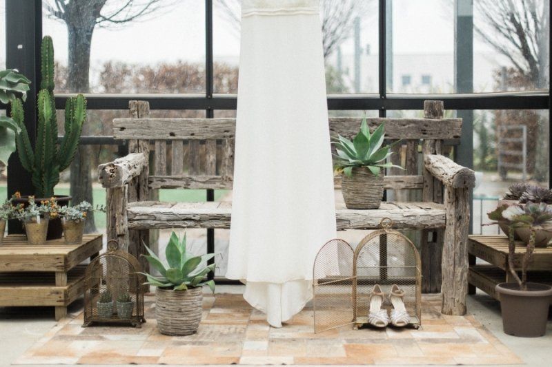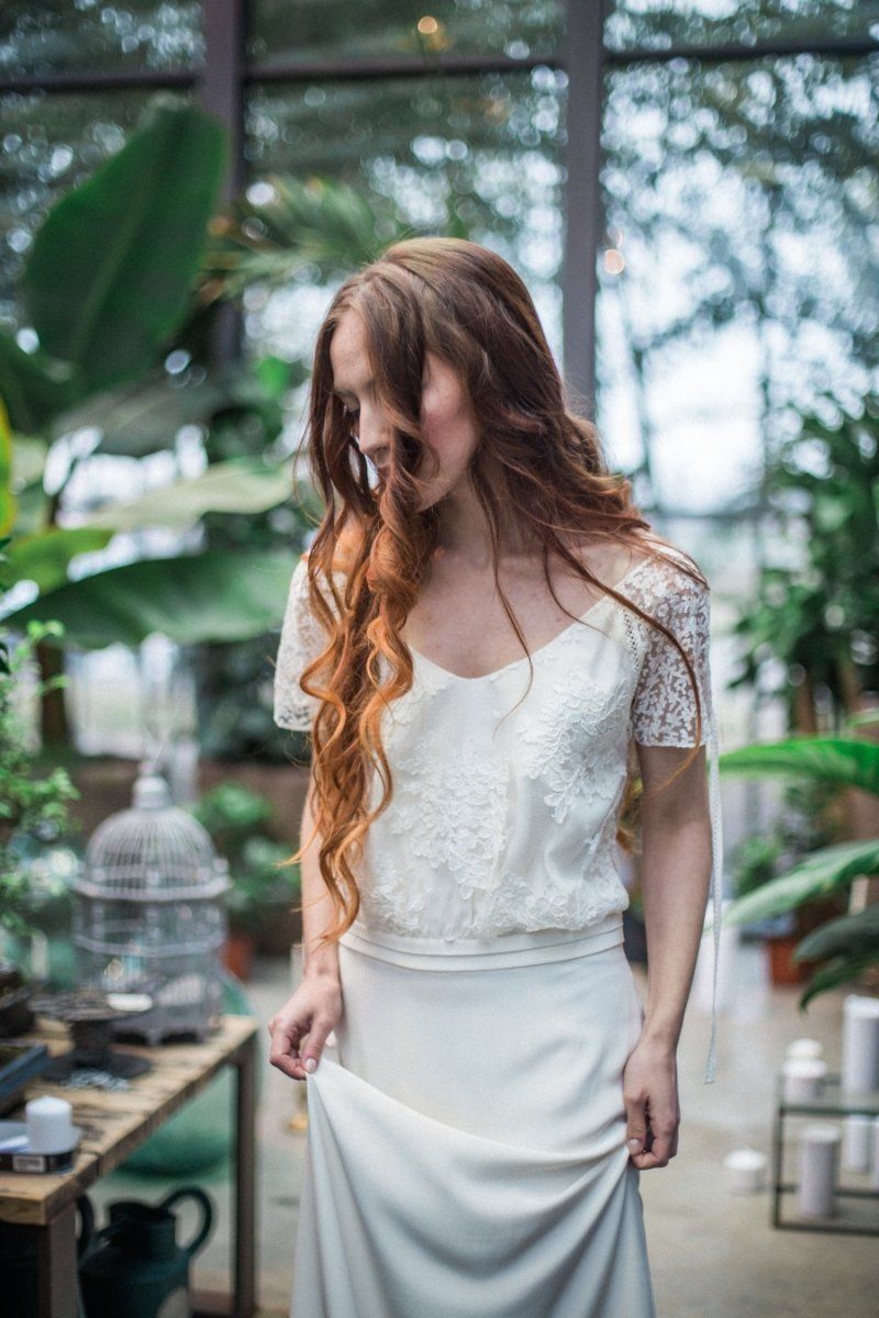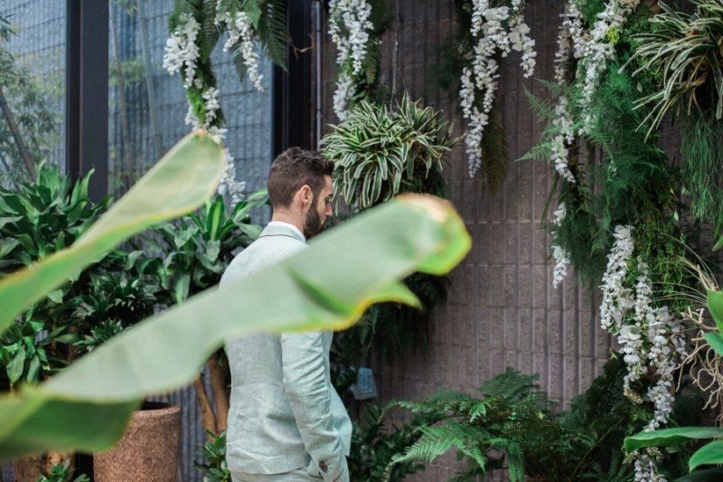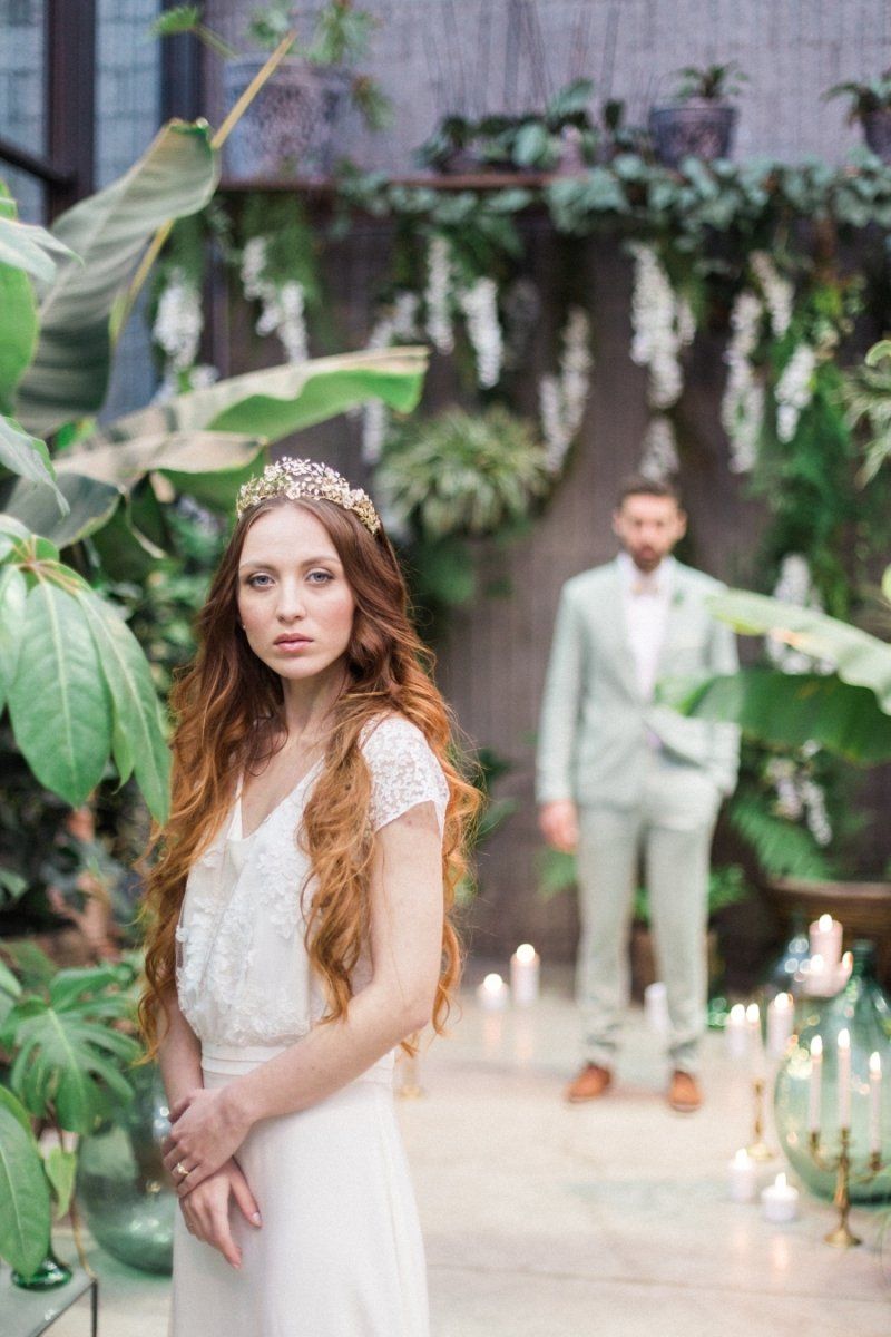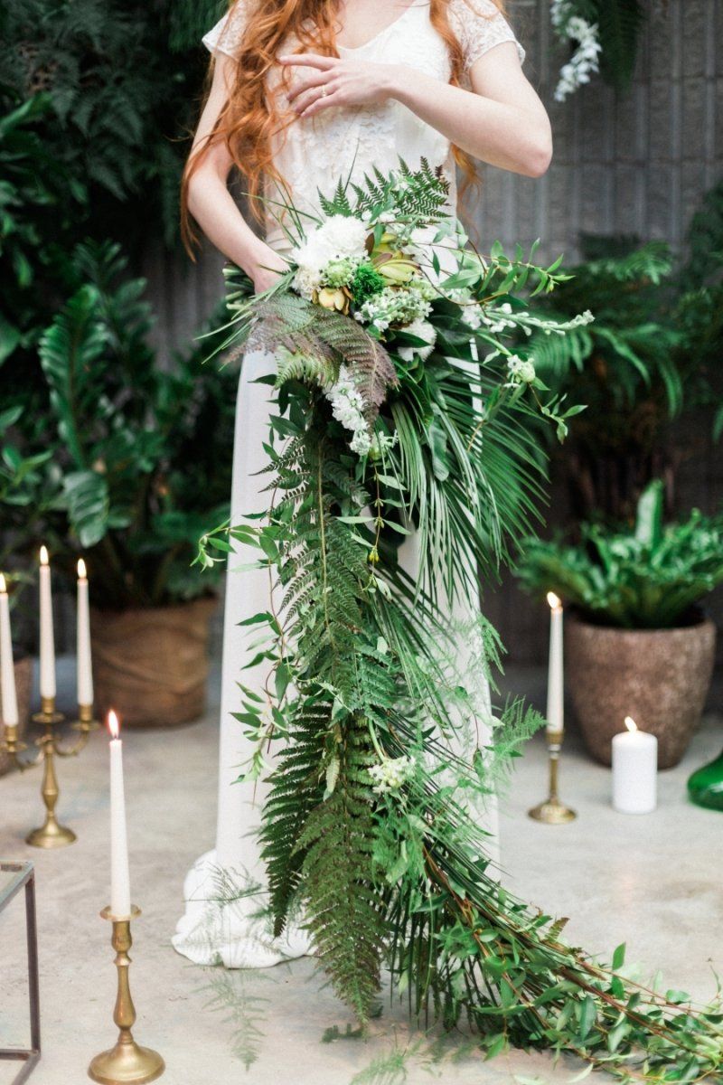 The inspiration, that was set in the stunning greenhouse with industrial touch MLA Selection, was made a greenery wedding ceremony full of plants, candles and a white flowers cascade backdrop by the talented flower designer.
