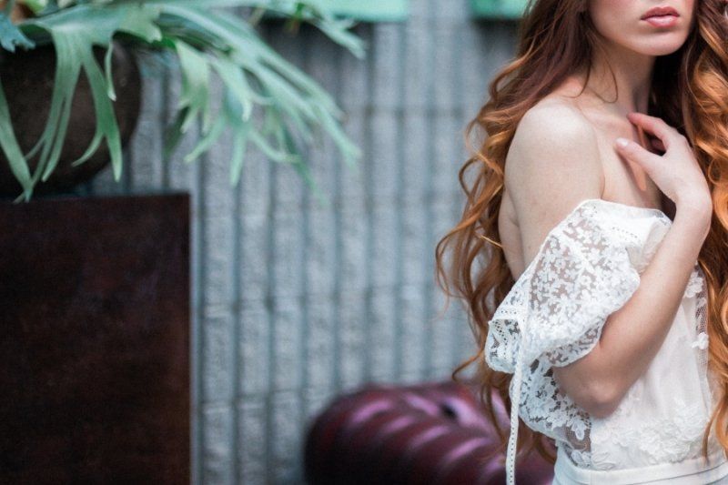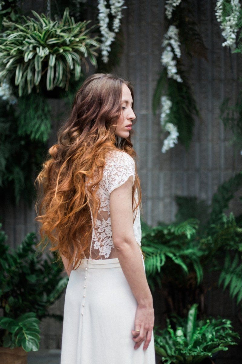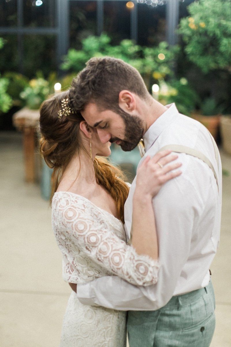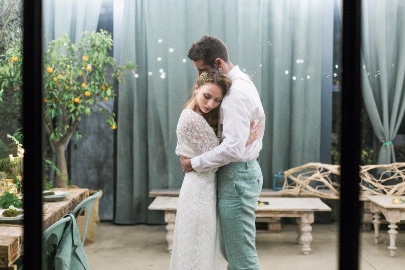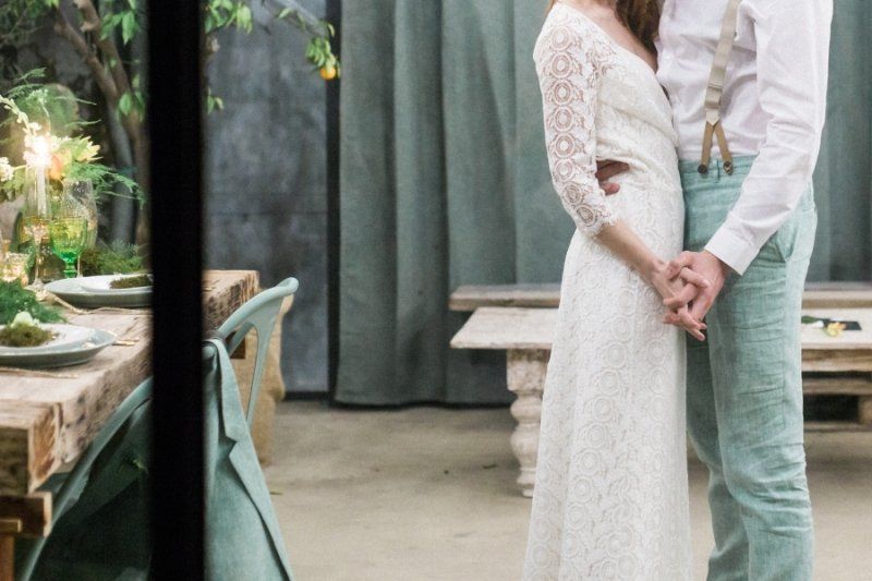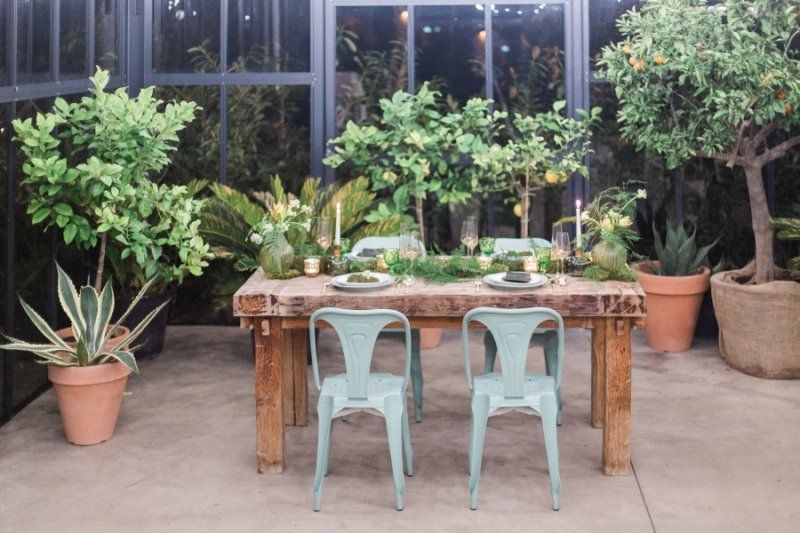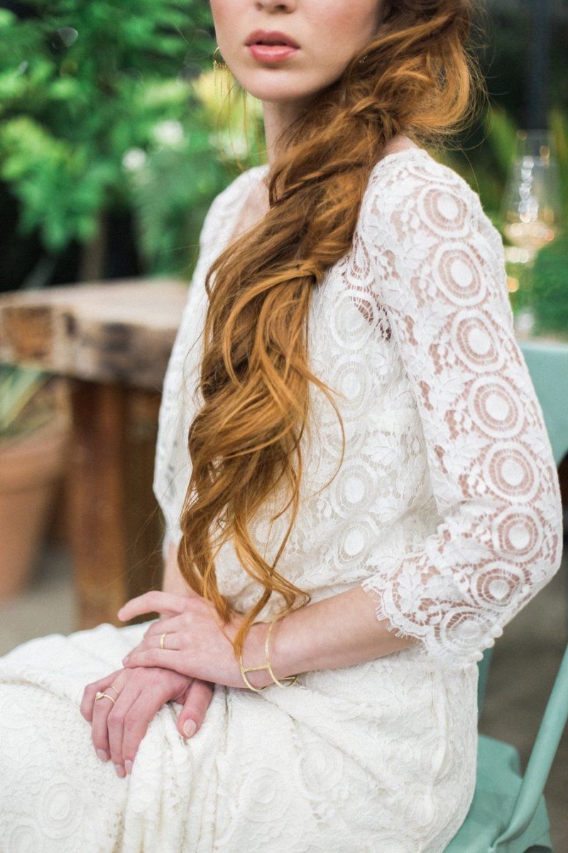 The inspiration, that was set in the stunning greenhouse with industrial touch MLA Selection, was made a greenery wedding ceremony full of plants, candles and a white flowers cascade backdrop by the talented flower designer.