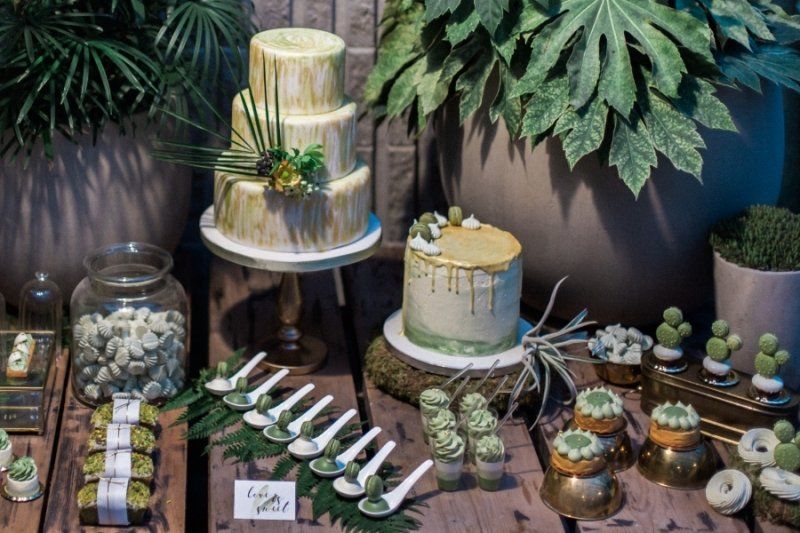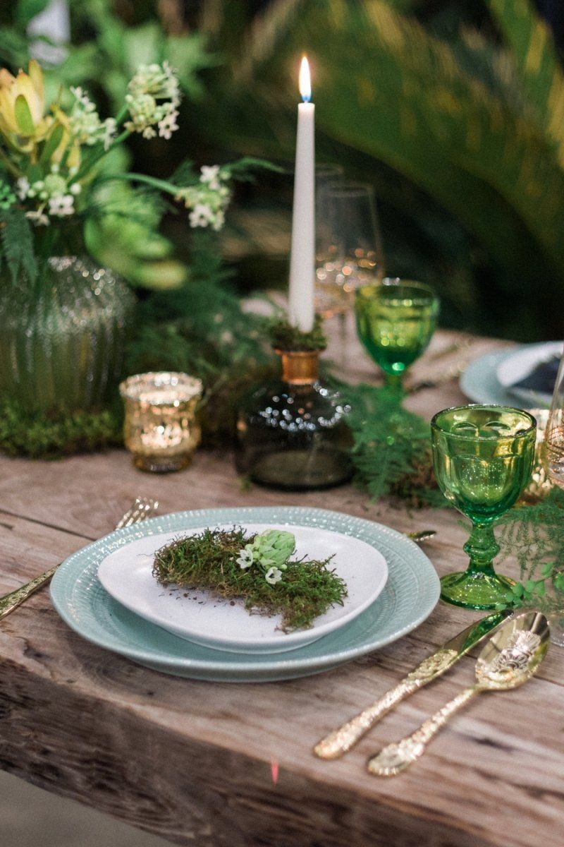 The raw wood table has a super-curated table setting and was gently finished with greenery moss, candles and an astounding stationery. Alessia, our extraordinary baker has made to this shoot the most awesome greenery desserts with a lot of vegan flavours to be completely in the theme and together with Lea they made the most delightful and stunning greenery sweet table that you’ve ever seen.